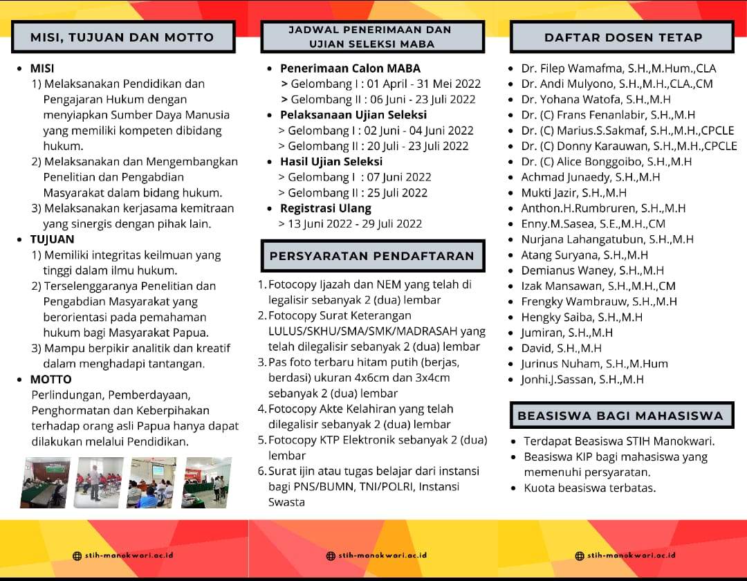Untuk Pendaftaran Camaba STIH Manokwari Silahkan Klik Link di bawah ini :