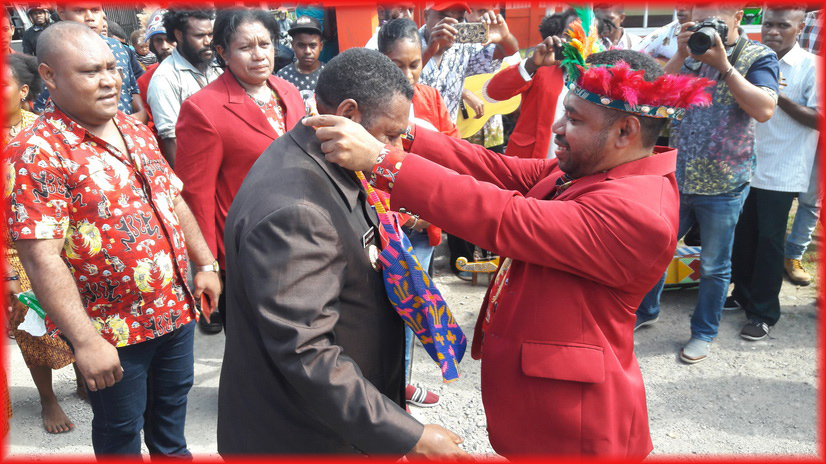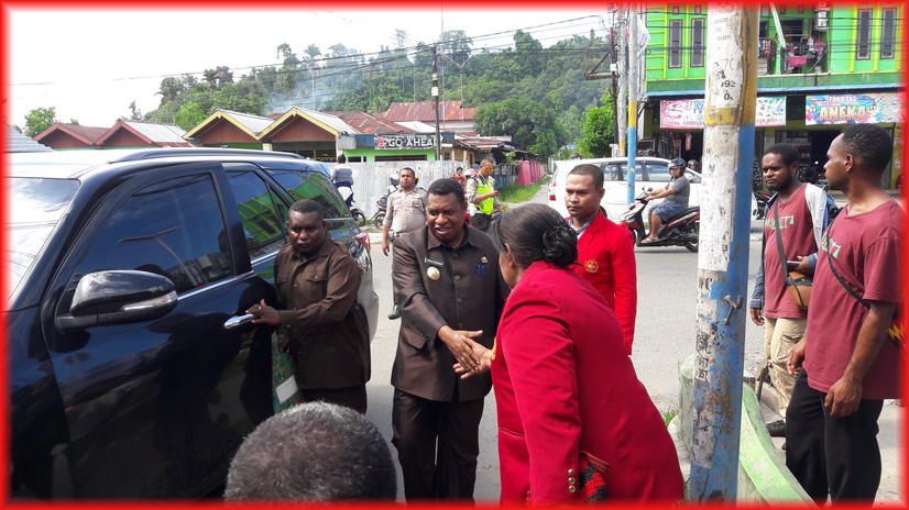 Bupati Kabupaten Manokwari disambut Ketua STIH Manokwari Bpk. Filep Wamafma, S.H.,M.Hum.C.L.A