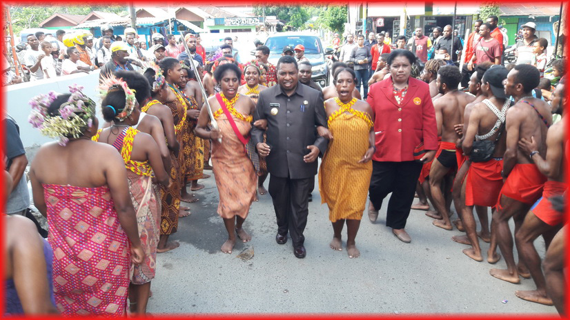 Bupati Manokwari disambut Ketua Panitia Pelaksana Acara Ibu DR. Yohana Ivonne Watofa, S.H.,M.H